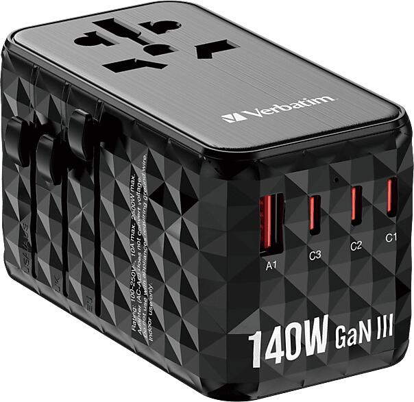Verbatim UTA-10 GaN III utazó adapter 2xUSB-C PD 140W QC 4+, 2xUSB-A 3.0 csatlakozás (32125) (32125)